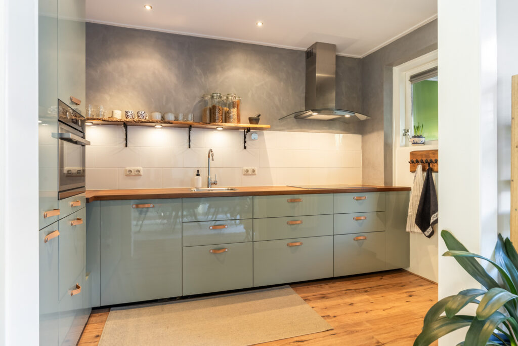 Entree/hal met modern toilet, kastruimte en trapopgang. De lichte woonkamer is ruim van opzet (ca. 32 m²), voorzien van tuindeuren, stucplafond met inbouwspotjes en sfeervol afgewerkt. Aan de achterzijde vind je de open keuken in hoekopstelling (ca. 7 m²), die in 2019 is vernieuwd en uitgevoerd in een eigentijdse kleurstelling met diverse inbouwapparatuur. Dankzij de open verbinding met de eetkamer ontstaat een fijne leefruimte. Vanuit de keuken bereik je de in 2021 aangebouwde bijkeuken, ideaal voor witgoed, extra bergruimte en voorraad. De vloer van de woonkamer is extra comfortabel door de geïsoleerde kruipruimte.