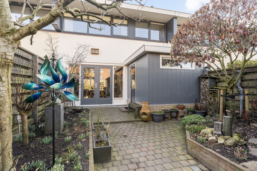 Ook de voor- en achtertuin zijn netjes aangelegd. De achtertuin beschikt over een achterom en een vrijstaande berging van ca. 7 m². Een fijne, onderhoudsvriendelijke buitenruimte met voldoende privacy.