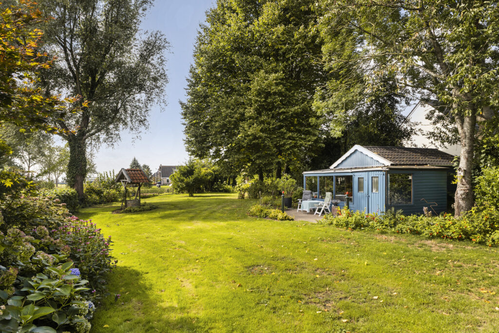 De locatie is echt imponerend. Een ruim perceel grond, kadastraal 3.030 m², waarbij de achtertuin heerlijk vrij is gelegen en vrij uitzicht biedt. Een tuin met zeer veel mogelijkheden, momenteel ingericht met diverse fruitbomen, een groentetuin, borders en een groot grasveld. Zo ruim dat er zelfs mogelijkheden zijn voor het houden van kleinvee. Op het achtererf is tevens een sfeervol tuinhuis gerealiseerd, een heerlijke plek om 's avonds nog lang buiten te zitten en van de natuur te genieten. Op het erf zijn tevens nog 4 monumentale bomen aanwezig. Via de oprit is de grote garage bereikbaar (ca. 6 x 7 meter).