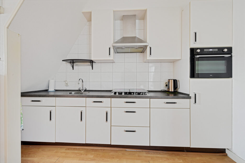Begane grond: hal/entree met trapopgang, lichte en gezellige woonkamer (ca. 24 m²) met grote raampartijen die zorgen voor veel natuurlijk licht en een prettige woonbeleving. De open keuken (ca. 7 m²) met inbouwapparatuur bevindt zich aan de achterzijde en is praktisch ingericht met voldoende werk- en kastruimte. Aangrenzend de bijkeuken (ca. 2,6 m²) met toegang tot de tuin. De badkamer is op de begane grond gesitueerd en voorzien van een douche, wastafel, toilet en aansluiting voor de wasmachine.