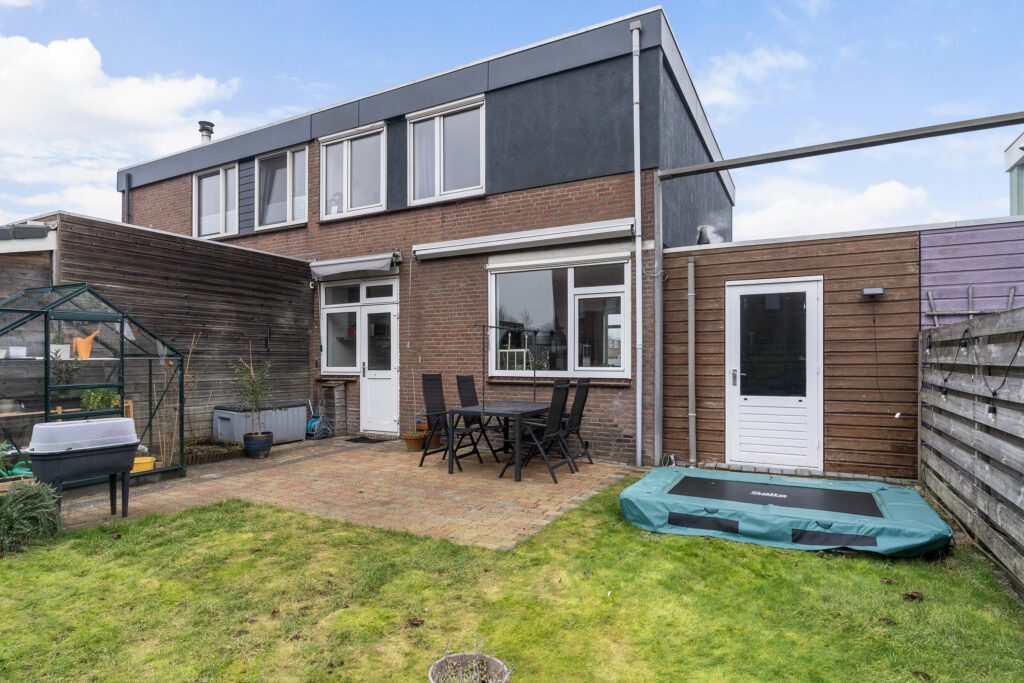 Functionele gezinswoning, type helft van een dubbel, met aangebouwde garage/berging en een flinke achtertuin, gelegen op het zuiden.