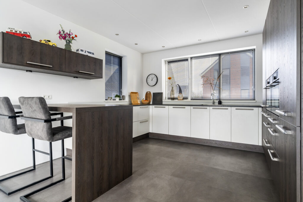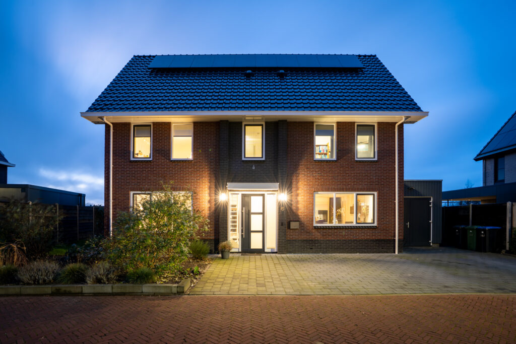 Naast de uitstekende isolerende voorzieningen, is de woning v.v. een hoogwaardig afwerkingsniveau. Zowel de begane grond als de verdieping is volledig v.v. vloerverwarming en afgewerkt met mooie pvc-vloeren. De 2e verdieping wordt verwarmd middels infrarood panelen. Alle binnendeuren uitgevoerd als zgn. stompe deuren en er is een oplaadpunt t.b.v. een elektrische auto. De gehele achtergevel van de woonkamer is bijna volledig