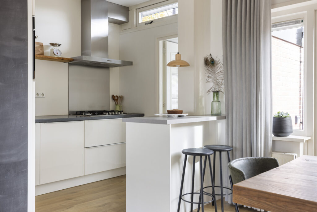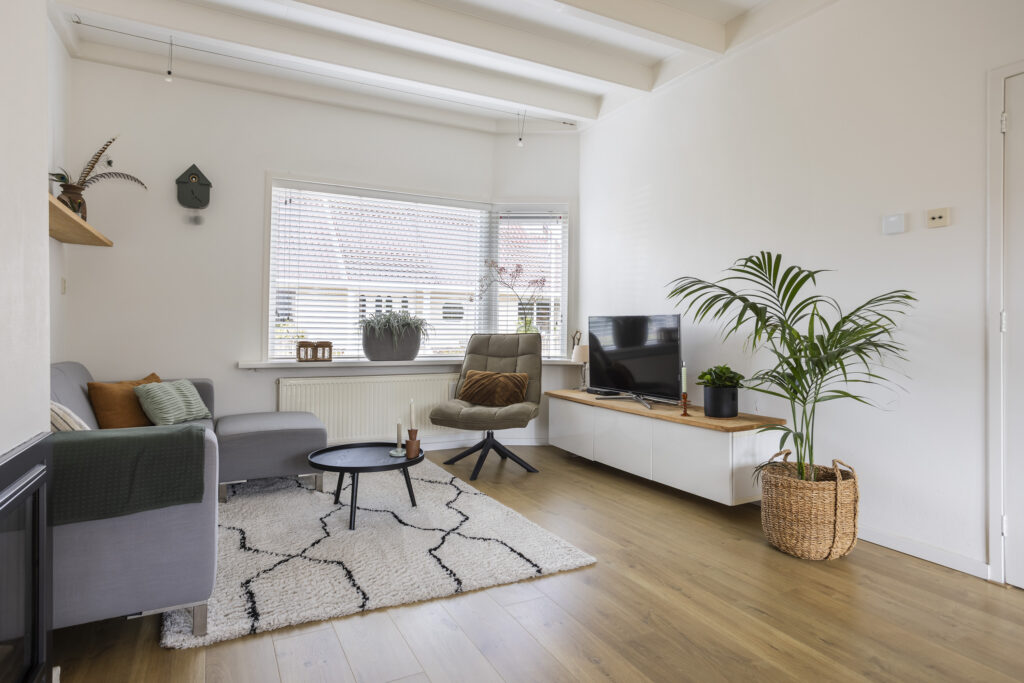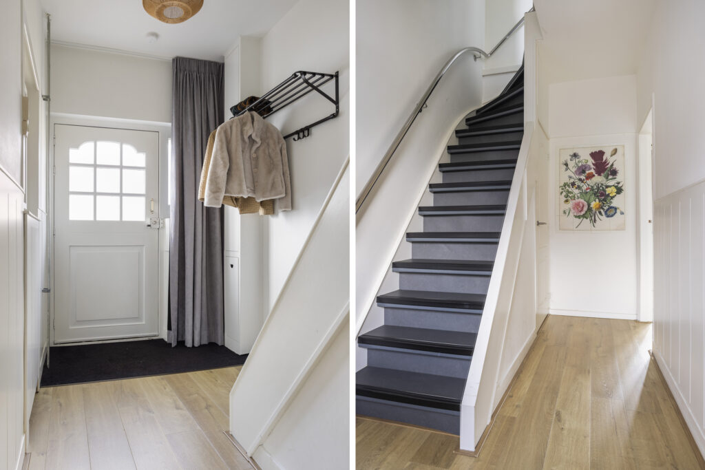 De lichte woonkamer met balkenplafond en de moderne open keuken uit 2016 vormen een fijne leefruimte. Aan de achterzijde bevindt zich een praktische en ruime bijkeuken/berging (ca. 9 m²) met witgoedaansluitingen, een toilet en de badkamer. Een erg mooie combinatie van authentieke jaren ’30-charme en hedendaags wooncomfort.